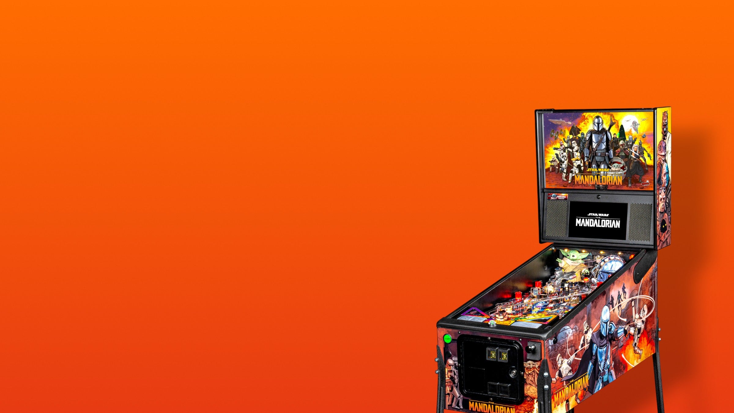 * Grogu sculpté : La machine est dotée d'une grande sculpture personnalisée de Grogu.